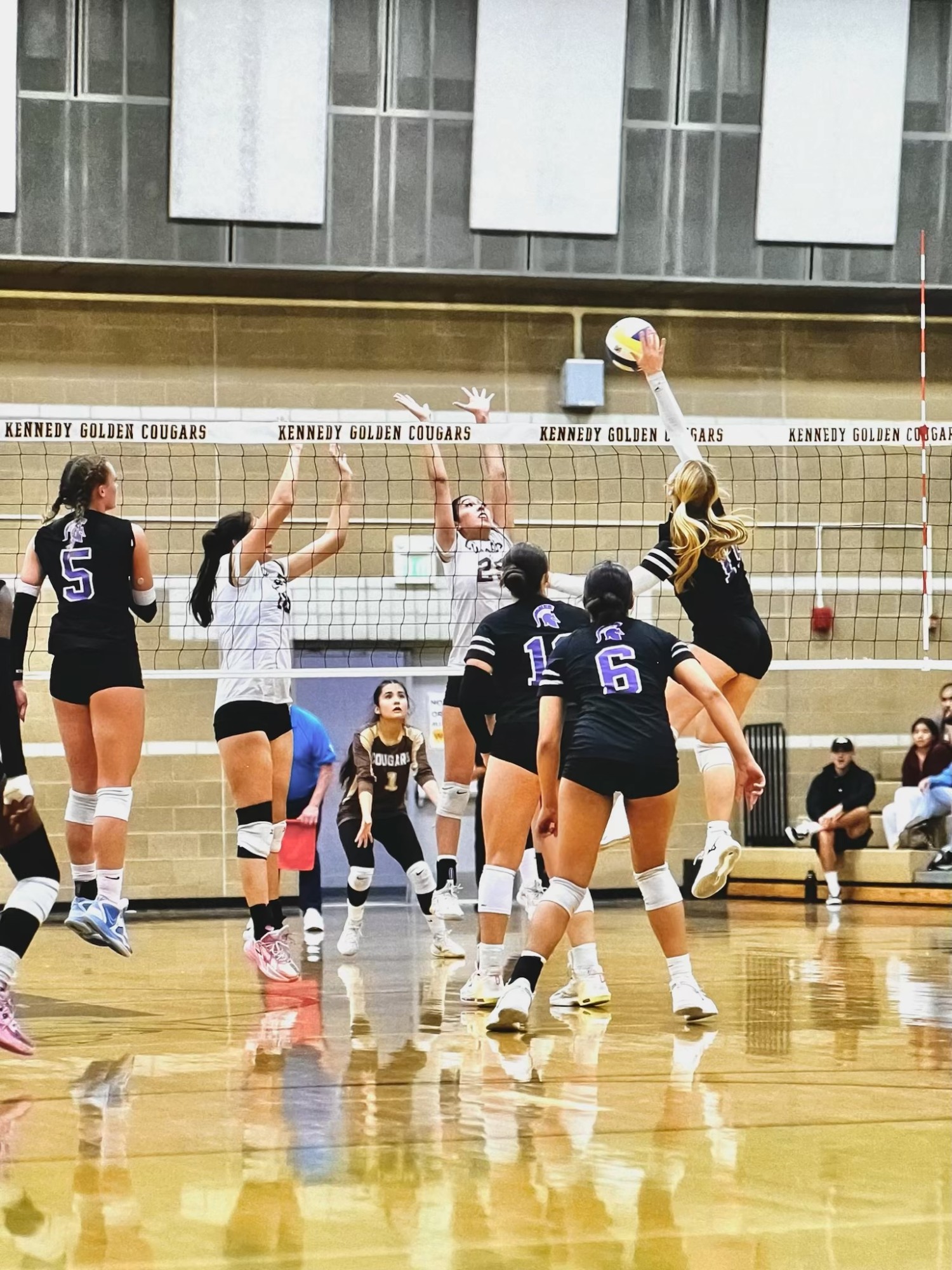 The Warriors continued their winning momentum Tuesday night, defeating John F. Kennedy High School in another thrilling performance. It was a great turn out by Rock Academy fans and the atmosphere was electric. The crowd was loud through all 5 sets and watched the girls win in exciting fashion 3 sets to 2.